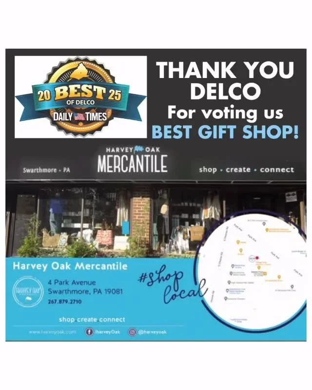 Since 2014, Harvey Oak Mercantile has been a shopping destination in the heart of Swarthmore. Through the careful curation of clothing, jewelry, beauty, and locally made treasures, Harvey Oak Mercantile supports emerging artists, local makers, and respected brands. We are women-owned and we believe that living, being, and shopping in alignment with your values really matters; all of the products chosen for the shop are responsibly-sourced and hand-picked. Thank you for shopping local!